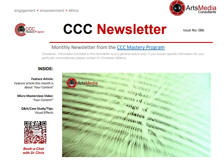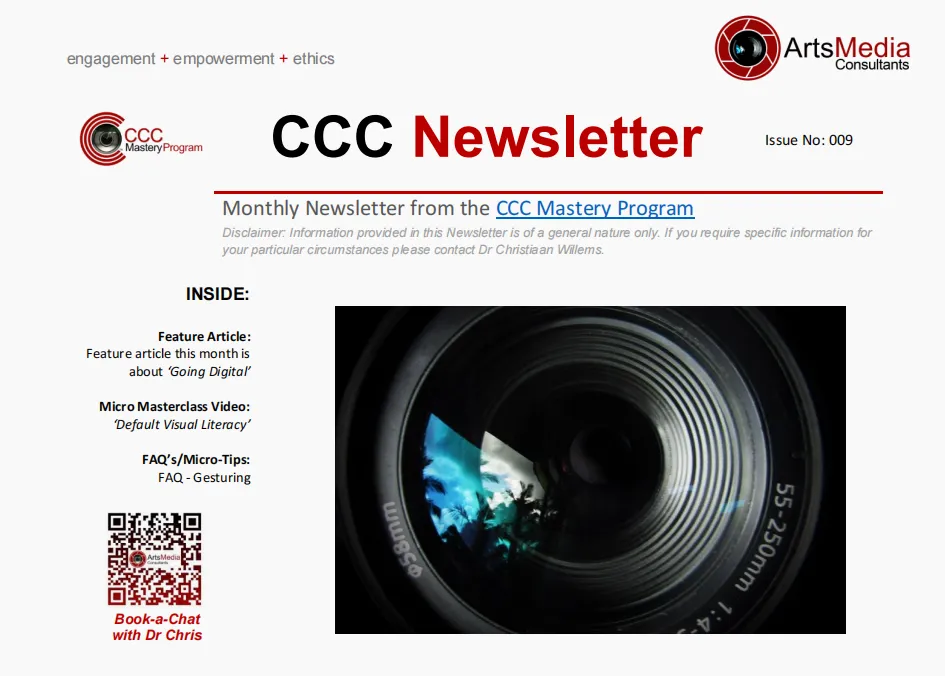 These newsletters are short, focused, and practical. Each issue includes insights from the CCC Mastery Program, links to One-Minute Micro-Masterclasses, and answers to common questions about digital communication. Download any issue below.
